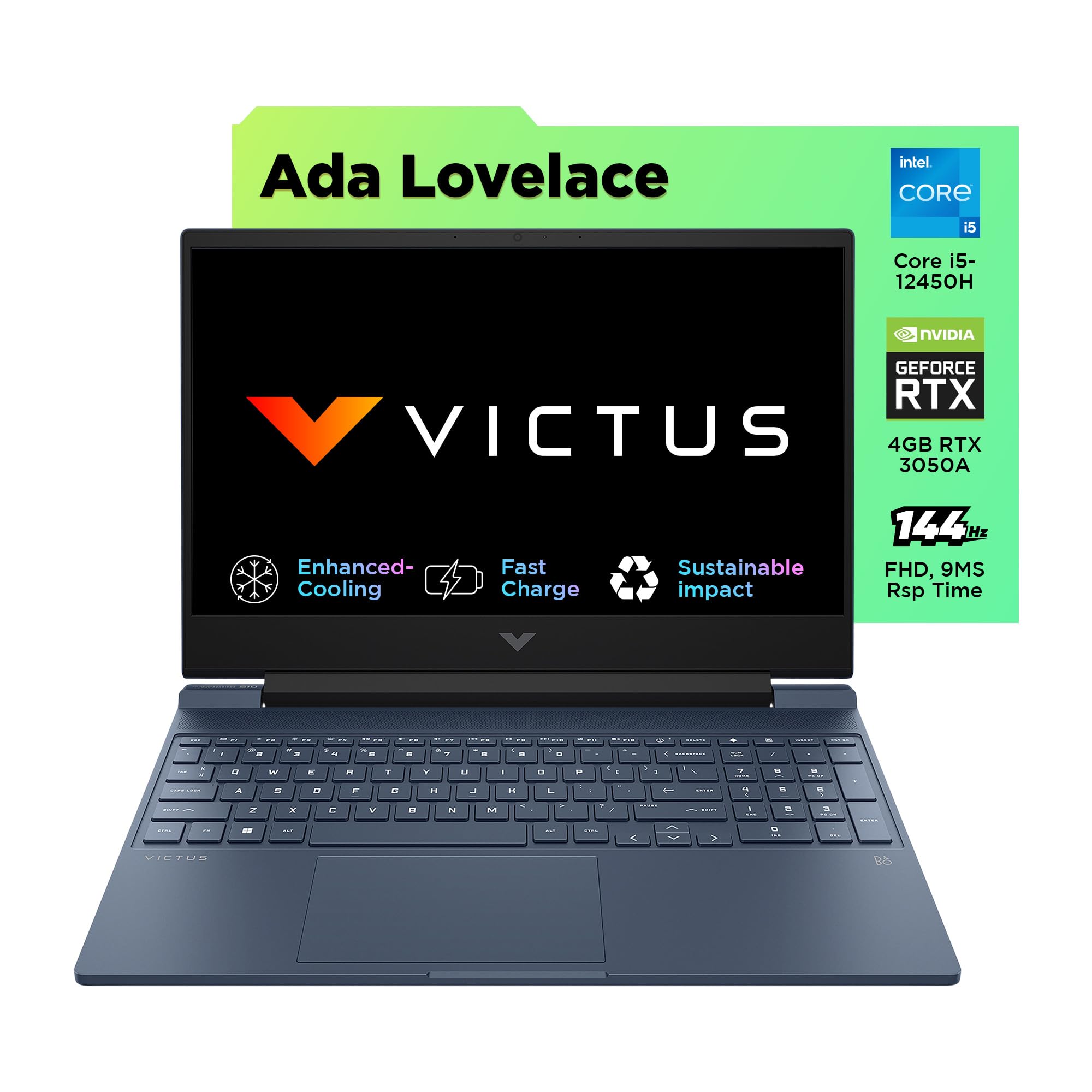 HP Victus, 12th Gen Intel Core i5-12450H, NVIDIA RTX 3050, 16GB DDR4,1TB SSD (Win11, Office21, Blue, 2.3kg), 144Hz, 9MS, IPS, 15.6-inch(39.6cm), Flicker-Free Gaming Laptop, Enhanced Cooling,fa1388TX